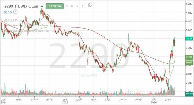 سهم "ينساب" يختبر المقاومة الرئيسية مع تصاعد في أحجام التداول, اليوم الأحد 5 أبريل 2026 11:13 صباحاً