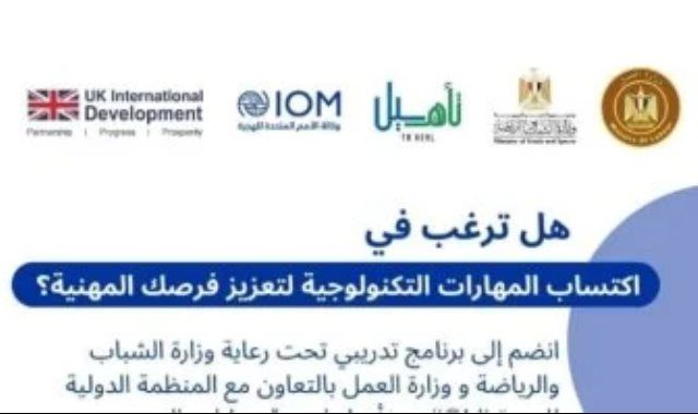 أعلنت وزارة العمل اليوم الأربعاء، عن فتح باب التقديم أمام الشباب ، للاستفادة من برنامج تدريبي مجاني، وذلك تحت رعاية وزارتي الشباب والرياضة،والعمل، بالتعاون مع المنظمة الدولية للهجرة (IOM Egypt) و Taheal، وذلك للتأهيل ولتنمية المهارات على تخصصات التسويق الرقمي، بتعلّم أساسيات صناعة المحتوى وتصميم الحملات الإعلانية عبر منصات التسويق الرقمي،والذكاء الاصطناعي، بتطوير المهام وتوفير الوقت في بيئة العمل،و أنه في حال عدم القدرة على اجتياز متطلبات أي من الدورتين، يمكن الالتحاق بدورة تمهيدية في الثقافة الرقمية، لتعلّم أساسيات استخدام الكمبيوتر والإنترنت بأمان وكفاءة..