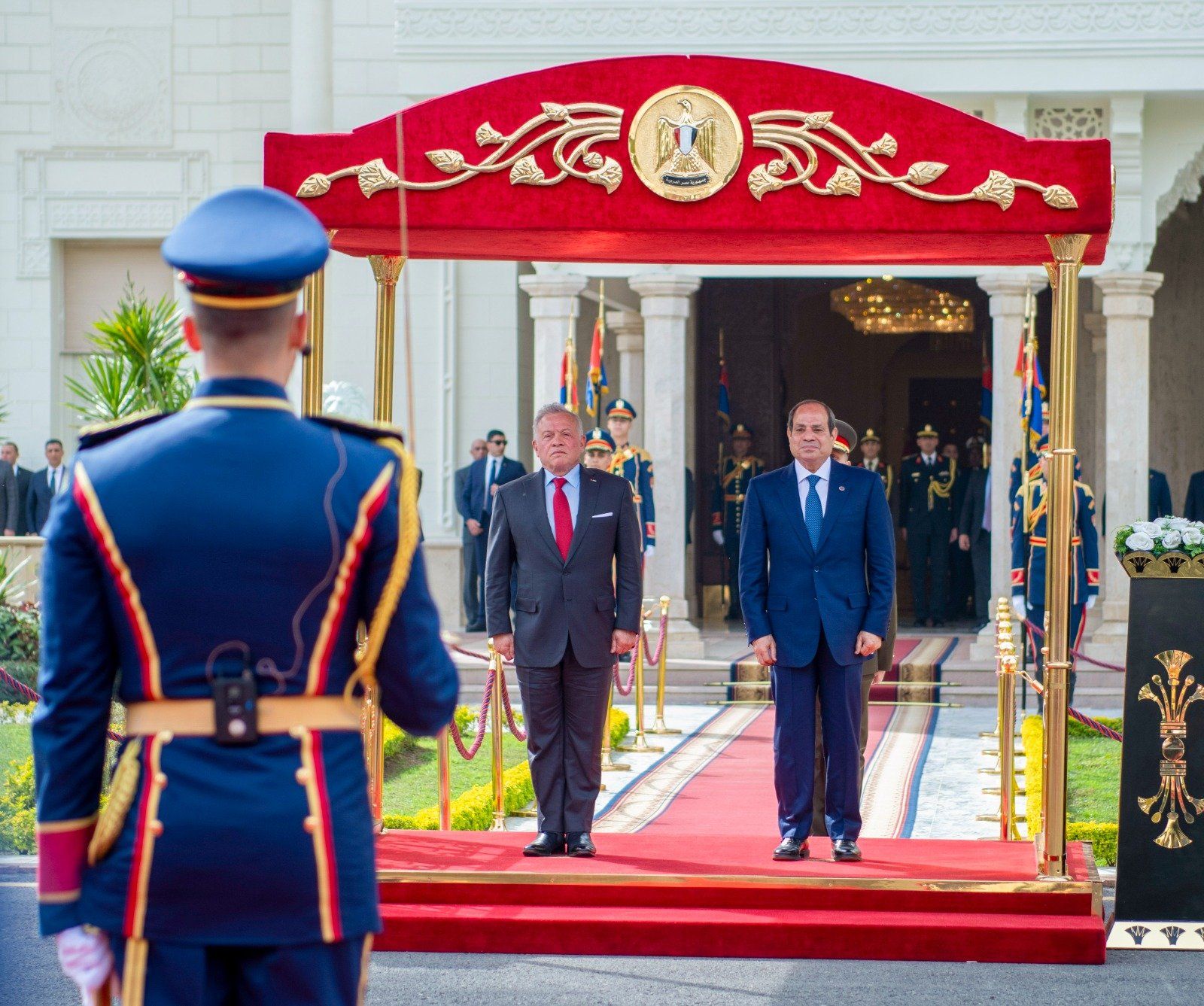ومن جانبه، أعرب العاهل الأردني عن سعادته بزيارة مصر، مؤكداً تقديره لما يربط البلدين الشقيقين من علاقات أخوة وتعاون مثمر، مشدداً كذلك على حرص الجانب الأردني على مواصلة العمل مع مصر لدفع العلاقات الثنائية إلى آفاق أرحب، فضلاً عن تعزيز التشاور السياسي الثنائي حول مختلف الملفات ذات الاهتمام.