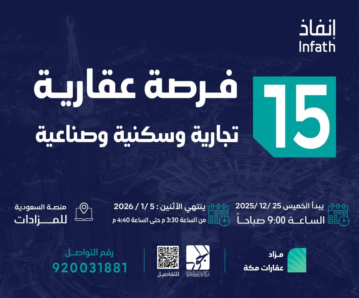 أرض خام وعقارات استثمارية وتجارية وسكنية وصناعية في مكة المكرمة, اليوم الثلاثاء 23 ديسمبر 2025 10:41 صباحاً