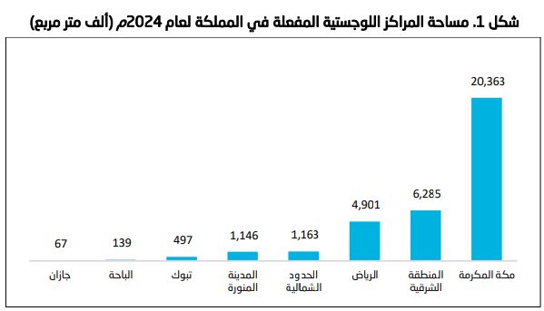 وأظهر التقرير، الصادر عن الهيئة العامة للإحصاء، اليوم الخميس، تسجيل منطقة مكة المكرمة أعلى مساحة للمراكز اللوجستية بواقع 20.4 مليون متر مربع، موزّعة على 6 مراكز لوجستية.
