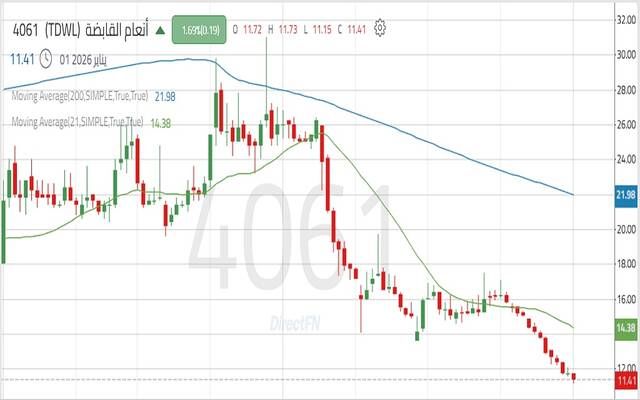 سهم "أنعام القابضة" ضمن اتجاه هابط يعكس سيطرة القوة البيعية, اليوم الاثنين 29 ديسمبر 2025 02:13 مساءً