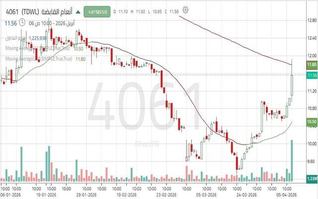 سهم "أنعام القابضة" يتحرك ضمن اتجاه هابط مع سيطرة القوة البيعية, اليوم الاثنين 6 أبريل 2026 12:24 مساءً