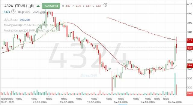 ارتداد سهم "بنان" من أدنى مستوياته التاريخية بدعم من أحجام التداول, اليوم الاثنين 6 أبريل 2026 05:24 مساءً