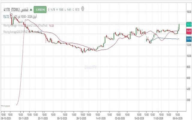 ومن المتوقع أن يستهدف السهم مستويات 15.50 ريال ثم 15.84 ريال خلال الحركة الصاعدة الحالية، وفي حال استمرار قوة الزخم الشرائي، قد يمتد الصعود ليشمل مستويات 16.08 ريال ثم 16.37 ريال، والتي تمثل منطقة عرض قوية قد تعيق استكمال الاتجاه الصاعد.