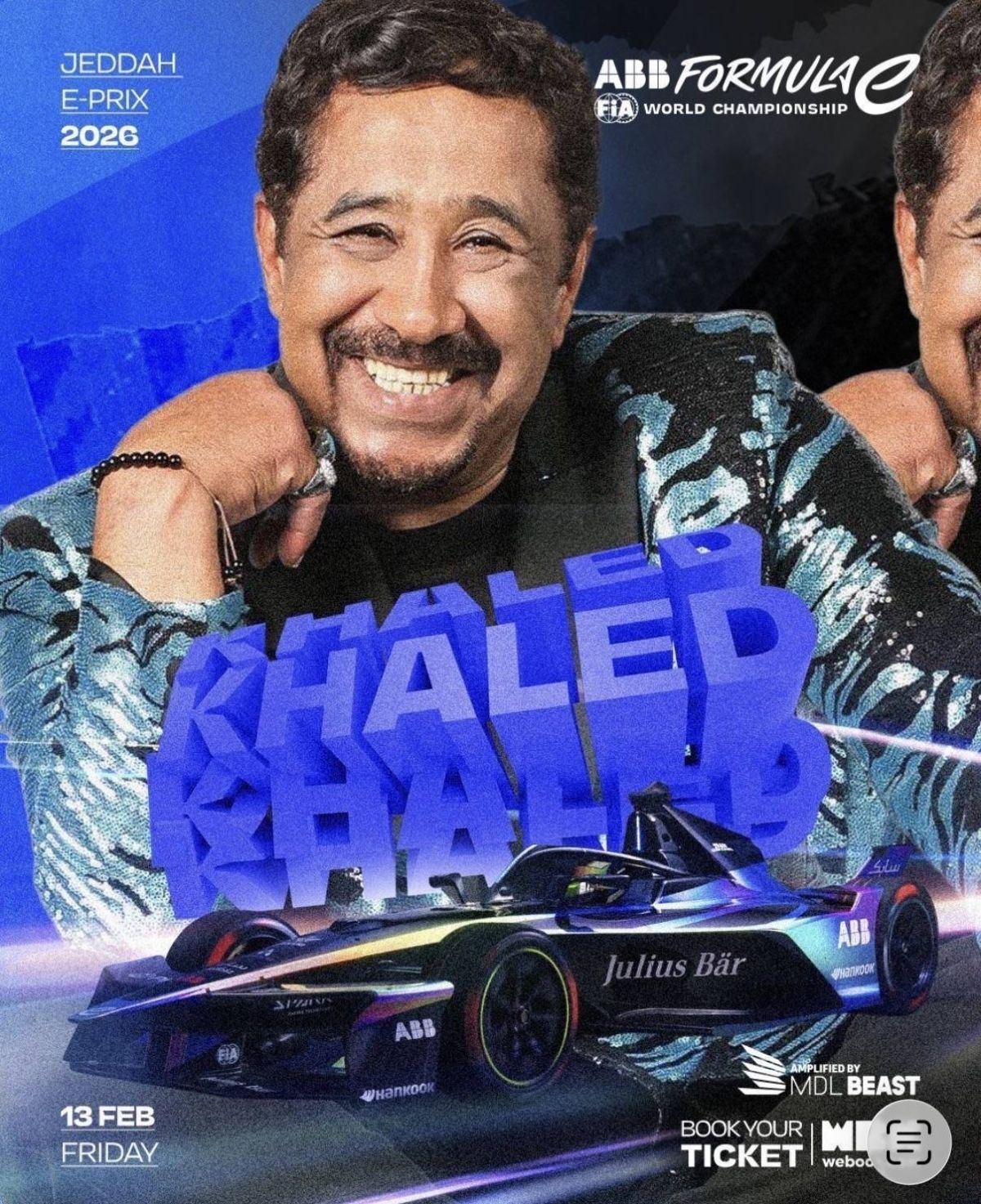 أعلنت بطولة العالم للفورمولا إي عن مشاركة النجم الجزائري الشاب خالد، إلى جانب نجمي الغناء المصري أحمد سعد وتامر عاشور، في الحفلات الغنائية المصاحبة لجولة جدة إي-بري 2026، التي تستضيفها حلبة كورنيش جدة، أسرع حلة شوارع في العالم، خلال الفترة من 13 إلى 14 فبراير المقبل.
